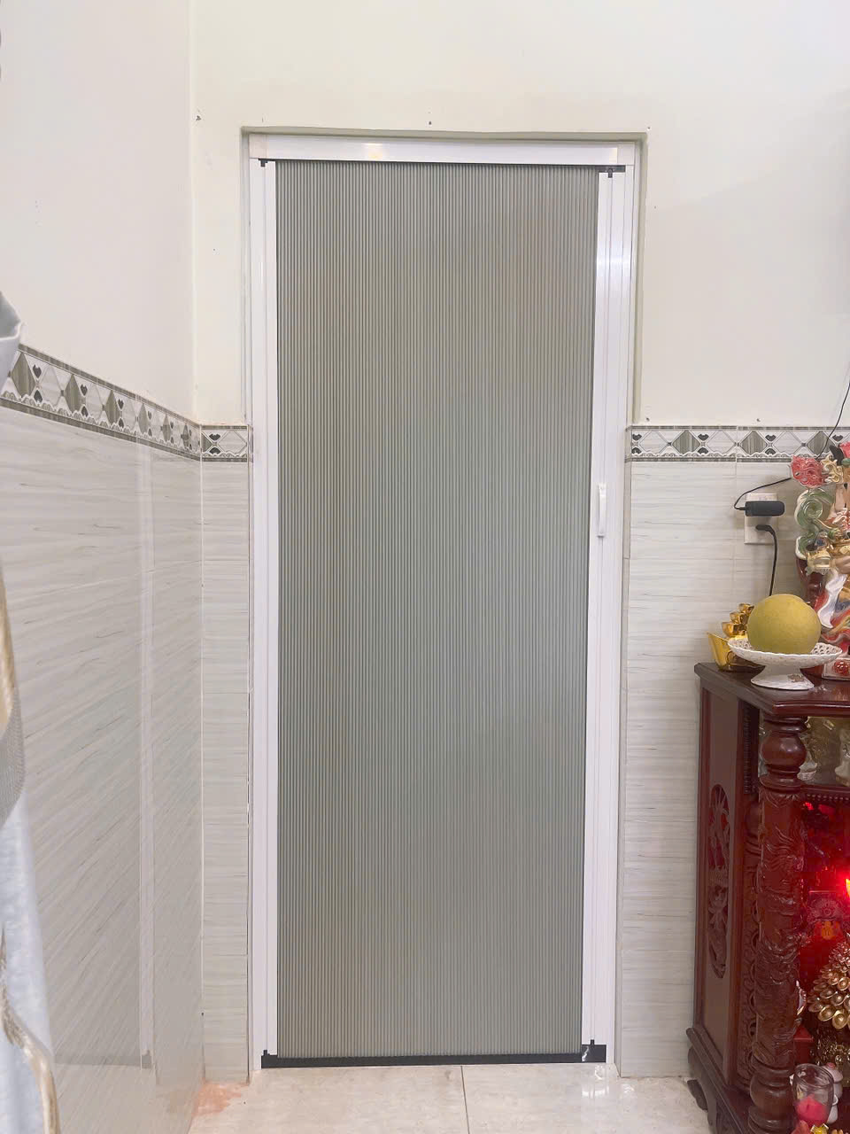 Rèm tổ ong hệ ray xích là lựa chọn lý tưởng cho không gian phòng thờ linh thiêng, mang lại sự tôn nghiêm và tách biệt mà không chiếm quá nhiều diện tích.